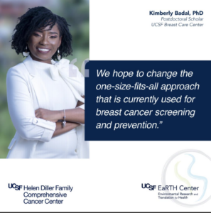 One of the first researchers supported by the UCSF EaRTH Center is Kimberly Badal, PhD, a WISDOM Study scientist originally focused on infectious disease research. After discovering the high burden of cancer in her home country of Trinidad and Tobago, however, she changed course. Part of her research now focuses on creating better models that can predict a risk for developing specific types of breast cancer, with a focus on women of color and people’s environmental exposures. The UCSF Program on Reproductive Health and the Environment held an interview reported on below with Dr. Badal to learn more about her cutting edge research recently funded by a grant from the Department of Defense, through the California Breast Cancer Research Program.